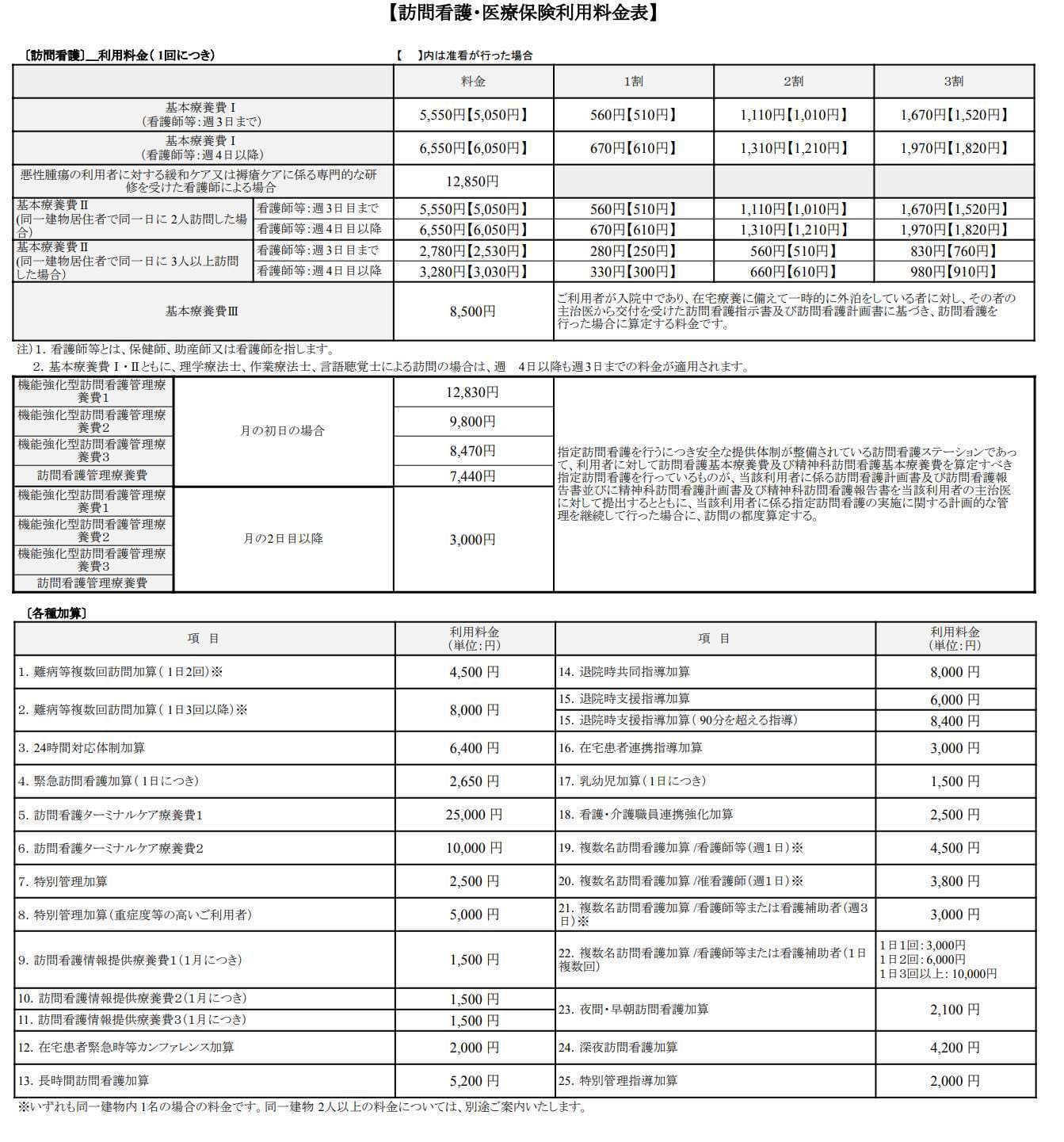 - サービスの提供は「訪問看護計画」に基づいて行います。なお、「訪問看護計画」は、利用者等の心身の状況や意向などの変化により、必要に応じて変更いたします。
